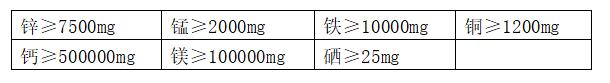 【原料组成】氨基酸鳌合钙、氨基酸鳌合锌、氨基酸螯合铁、酵母硒、硫酸锰、硫酸铜等多种矿物元素。