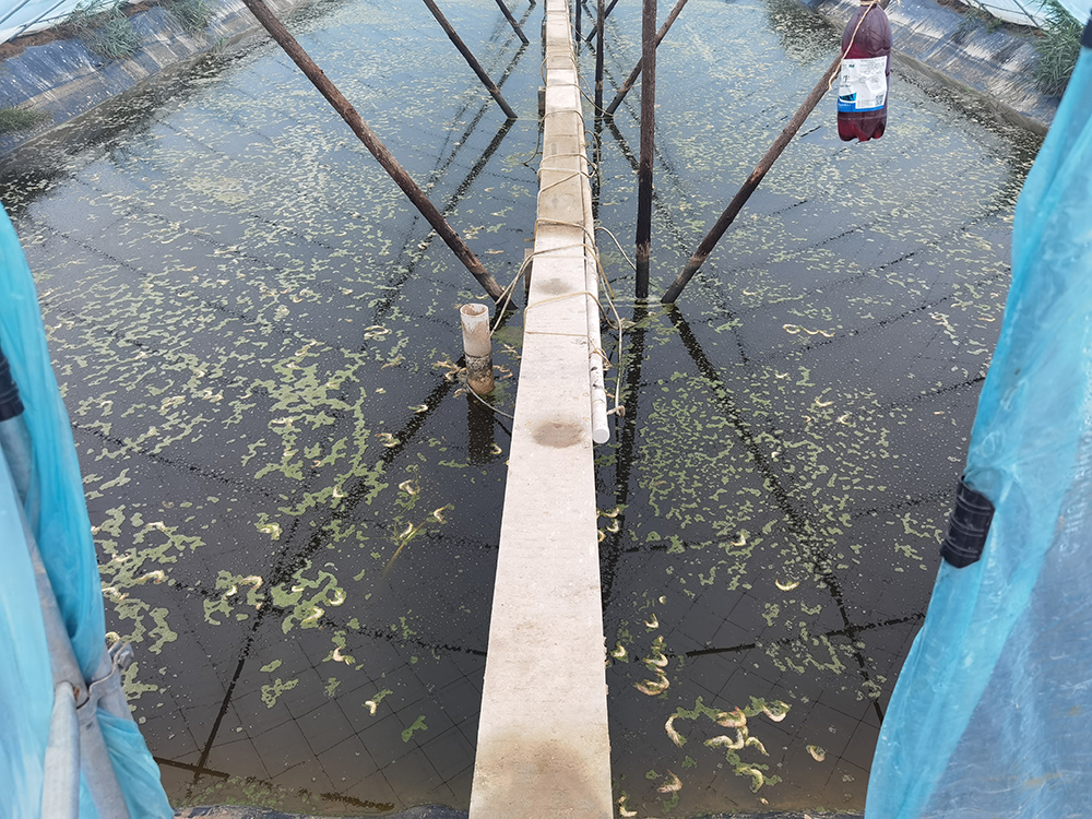 在春茬虾养殖销售之后,清塘晒塘的时间基十分短暂,所以绝大部分小棚堂口只经短暂简易处理后就直接放水养殖。就导致上一茬产生的有机物在小棚底部大量堆积不能及时分解氧化。