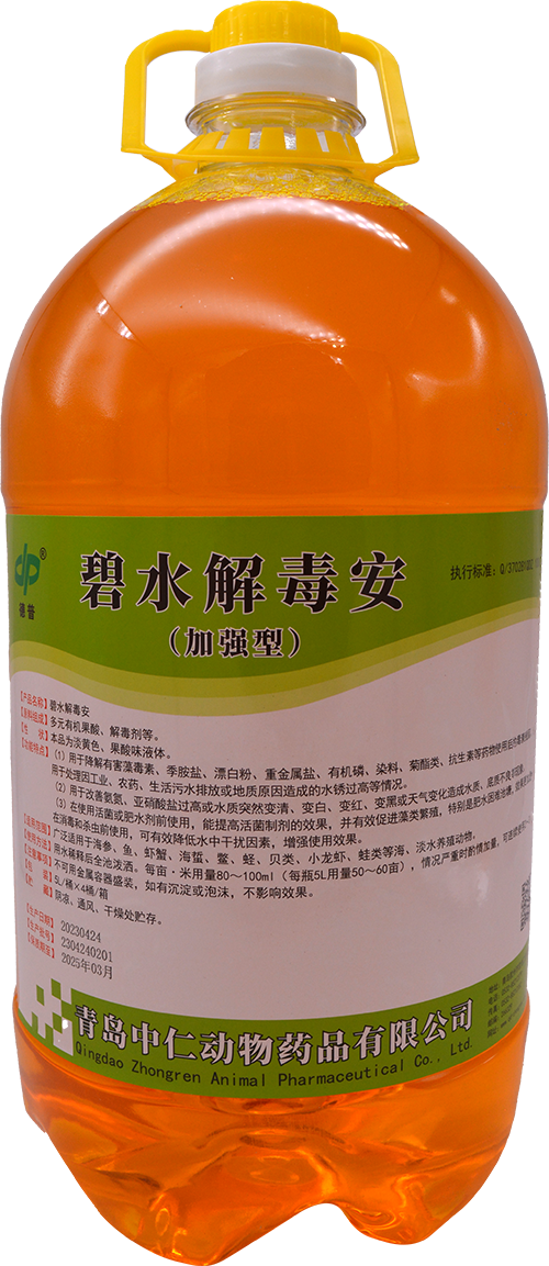 二、解决方案:先使用碧水解毒安(30亩▪米每桶)打破水体分层,增强水体通透性,再使用EM金露(20亩▪米每桶)配合速效肥水精(5亩▪米每桶)快速肥水,促进水体中藻类的繁殖,提高水体藻类多样性;并补充菌种,降低养殖水体中的亚硝酸盐、氨氮等有害物质。