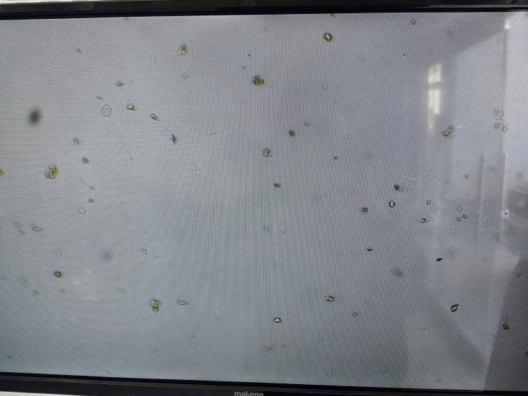 四、效果反馈:用药三天后水色逐渐恢复为绿色,藻类数量也有明显增长,且以绿藻为主,亚硝酸盐降至0.1左右,鲤鱼也恢复吃料。