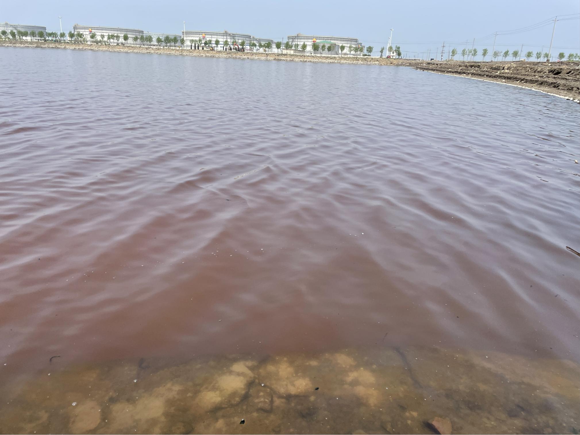 第二天,池塘跟踪效果,池边有死藻沉淀,水色变清,微红,镜检发现池塘以绿藻为主,少量金藻,少量甲藻(活性不高)。