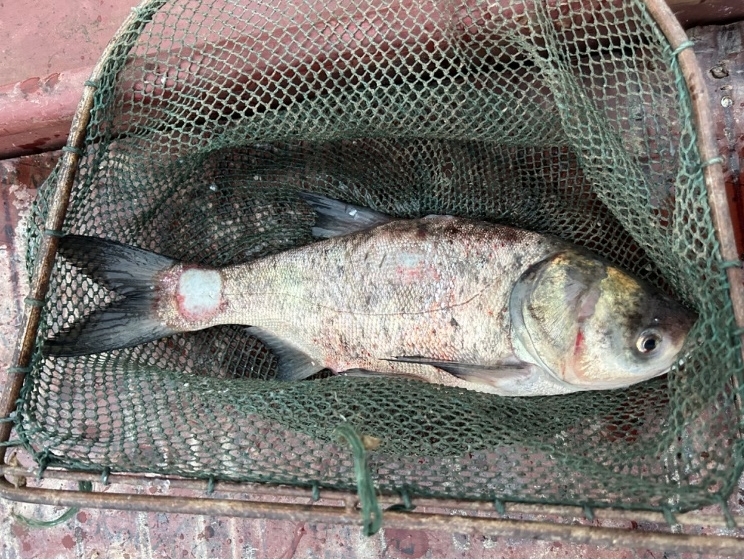 隔天用鱼康一号+新百安宁(苯扎溴铵溶液)全池泼洒,用量【鱼康一号:2亩*米/瓶;新百安宁:3亩*米/瓶】