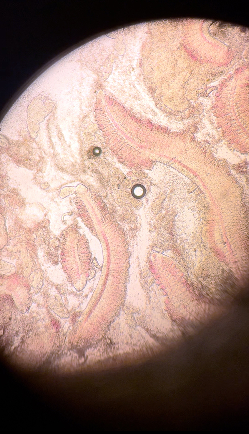 鳃上没有指环虫了,死鱼停止,吃料恢复并越来越好。