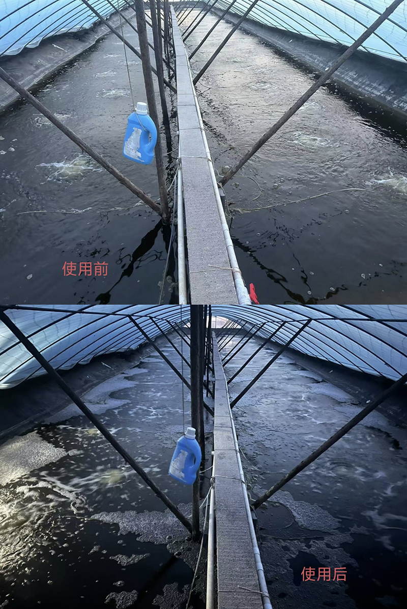 2.使用超强芽孢(1000亿)配合使用强效分解底改。快速分解水体及底质中的有机质,立体减少油膜的来源,注意提高水中溶氧。