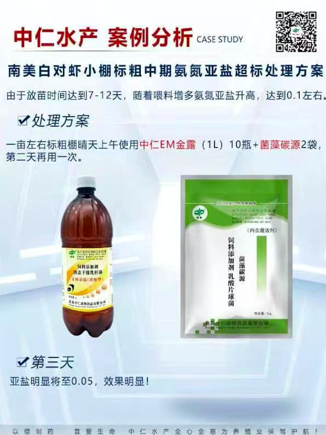 南美白对虾小棚标粗中期氨氮亚盐超标处理方案