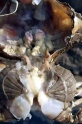 鱼虾蟹等养殖物大量活跃在上层水体中,生理性排斥下层水体,部分还表现有厌食、骚动不安、在水体表层游走,大量游塘、跳塘、鳃发黑、游泳足和步足先发黄后发黑,严重时出现大量死亡。