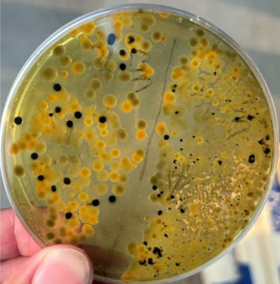 取带底泥水样,通过TCBS琼脂平板检查细菌计数,正常弧菌将显示为绿色或黄色菌落,硫酸盐还原细菌将显示为黑色菌落。或使用硫化氢检测试剂。