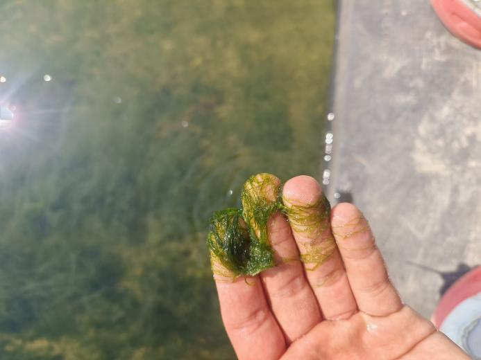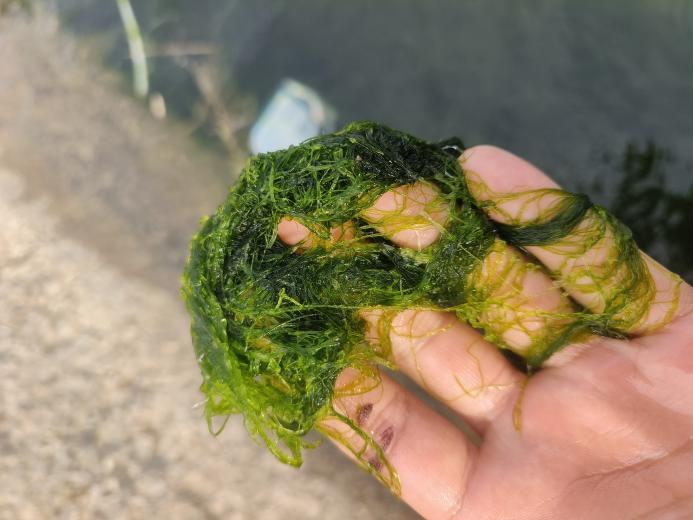 客户情况:蓝区王老板在5月20日发现海参池塘中出现大量大型底栖藻类(主要为绿管菜)