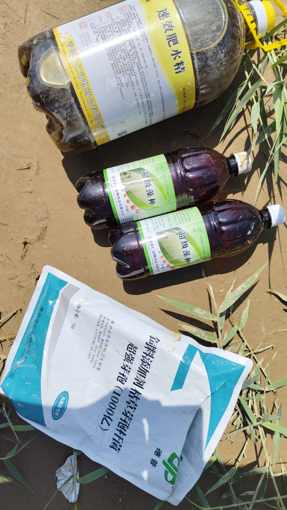 之后两天使用超级藻种+肥水精+EM金露(各1瓶2亩水体)。