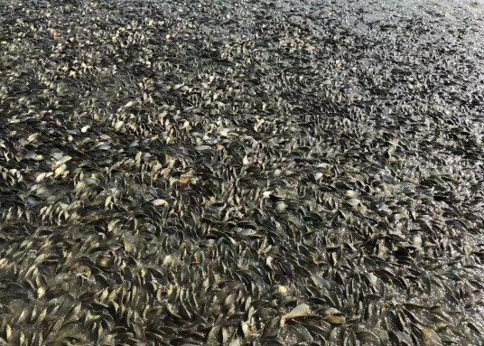 消毒两天后鲤鱼死亡量开始出现减少,四天后烂鳃病已基本控制,鲤鱼开始正常上台吃料。